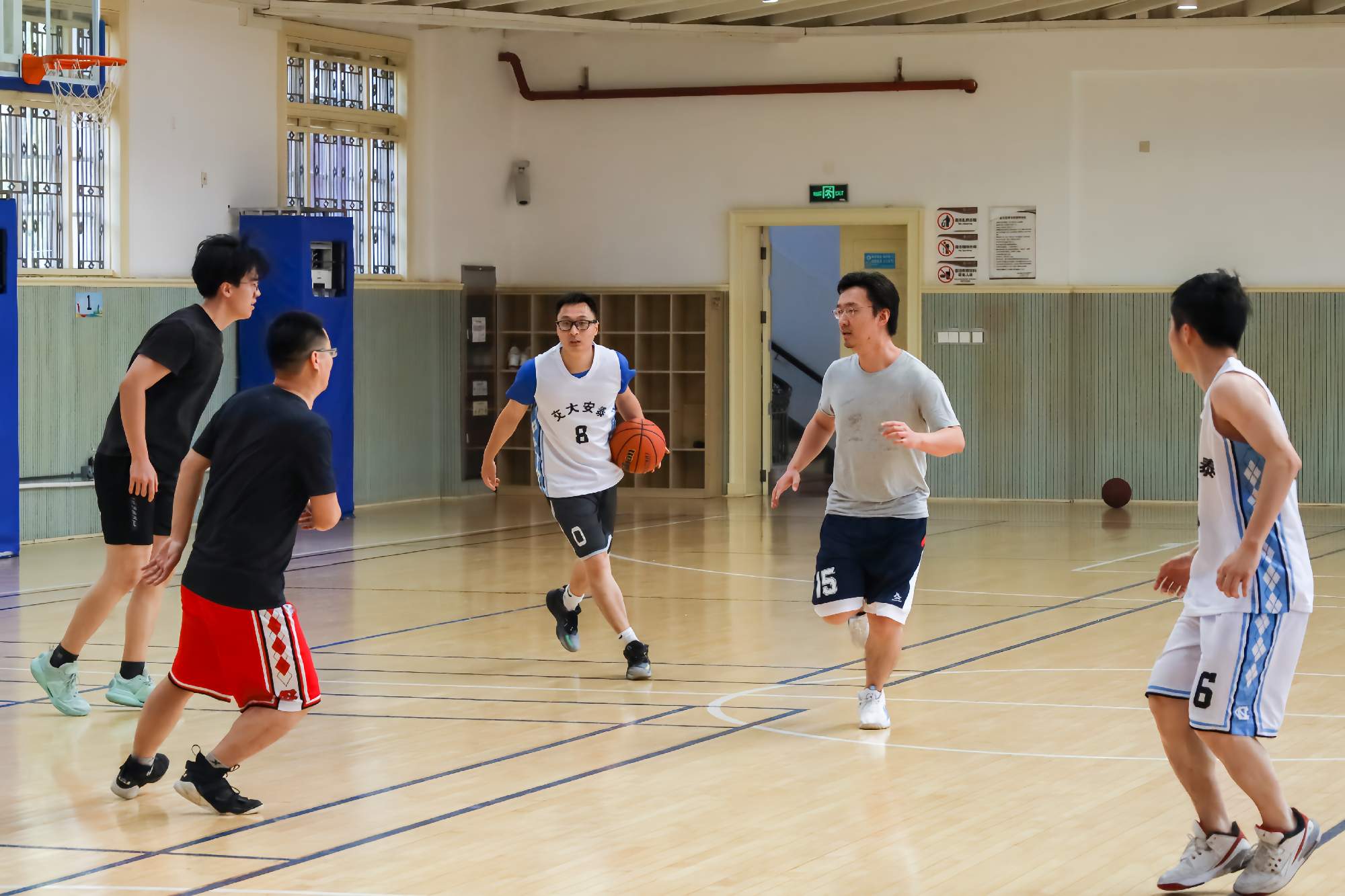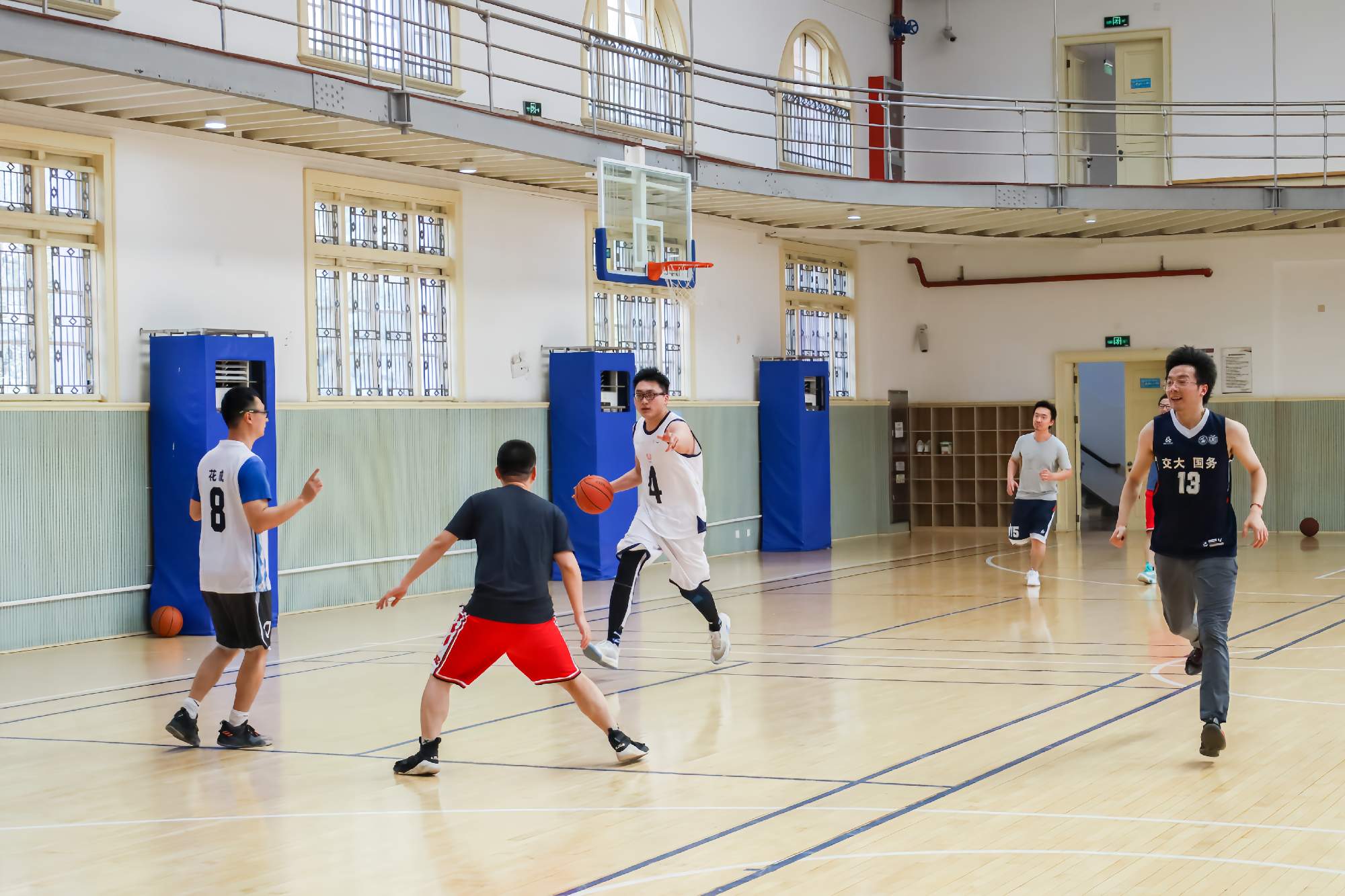 随着裁判一声哨响,比赛正式拉开帷幕。双方队员迅速进入状态,攻防转换节奏紧凑,配合默契。安泰经管学院凭借精准的外线投射和快速反击频频得分,而国务学院则依靠扎实的内线防守和稳健的阵地进攻紧咬比分。场上你来我往、高潮迭起;场下加油助威、欢声不断。最终,比赛在友好而热烈的氛围中圆满结束,胜负已非重点,真正的收获在于彼此间的情谊与理解。 此次友谊赛不仅展现了两院教职工昂扬向上的精神风貌,更为教学科研合作搭建了新桥梁。