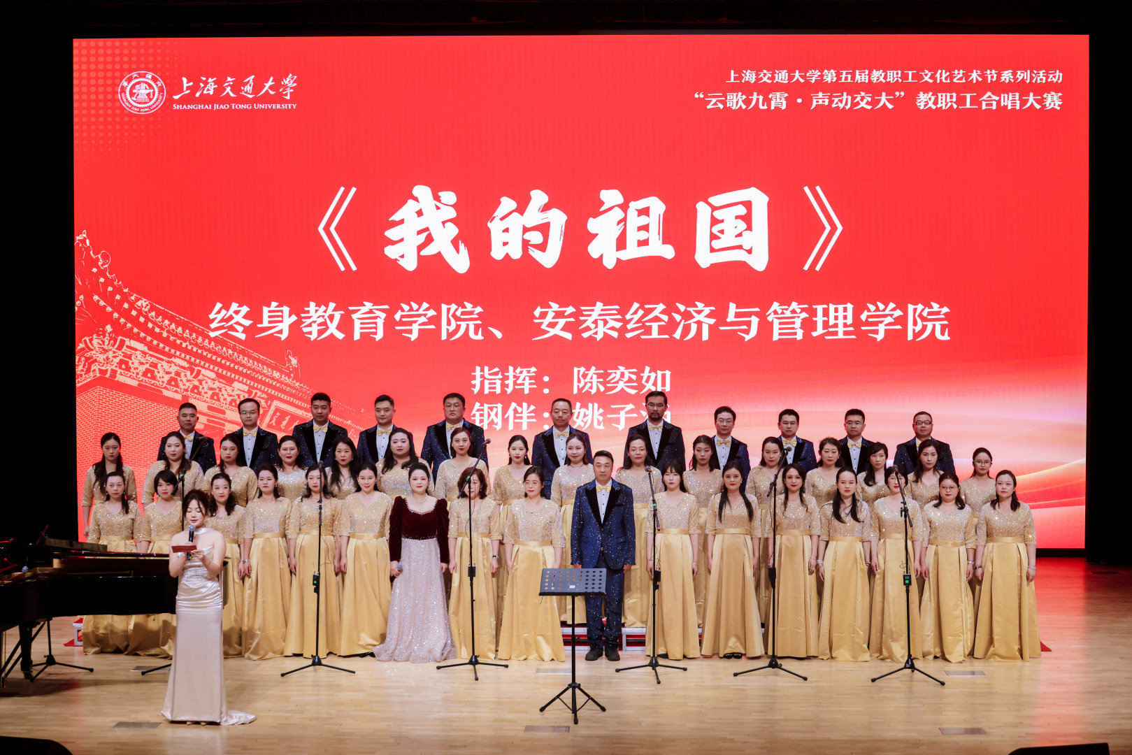 “一条大河波浪宽,风吹稻花香两岸”,悠扬的旋律层层递进、婉转升华,家国情怀充盈全场,老师们以歌言志、以声传情,将对祖国的热爱、对教育事业的赤诚融入旋律之中,充分展现出交大教职工昂扬向上、同心爱国向党的精神风貌,赢得现场评委与观众的一致认可。