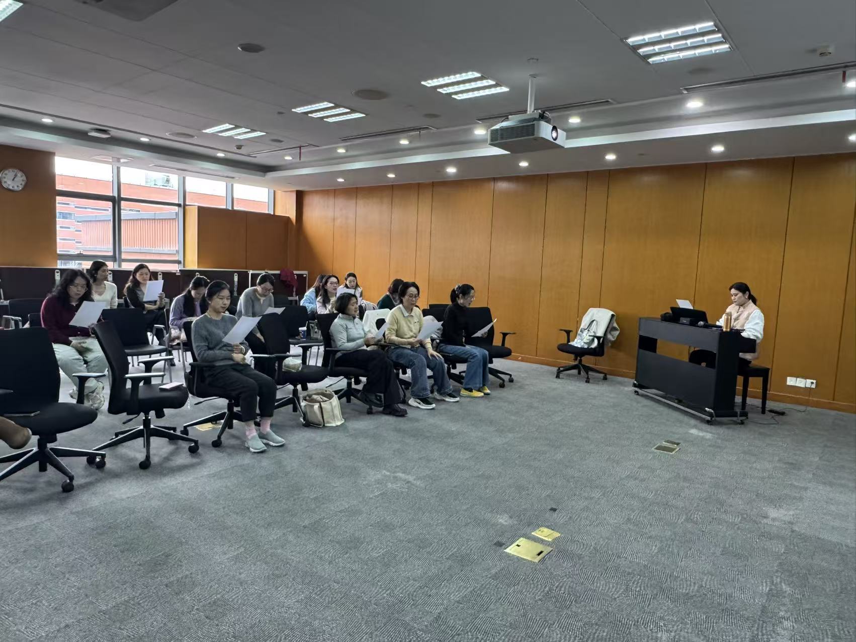 本次音乐午间沙龙氛围轻松热烈,参与教师积极投入每一个训练与演唱环节,纷纷表示收获颇丰。大家不仅掌握了科学发声与日常护嗓的实用技巧,有效缓解长期教学用嗓带来的疲惫感,也在轻松的音乐氛围中放松了身心,增进了同事间的交流。