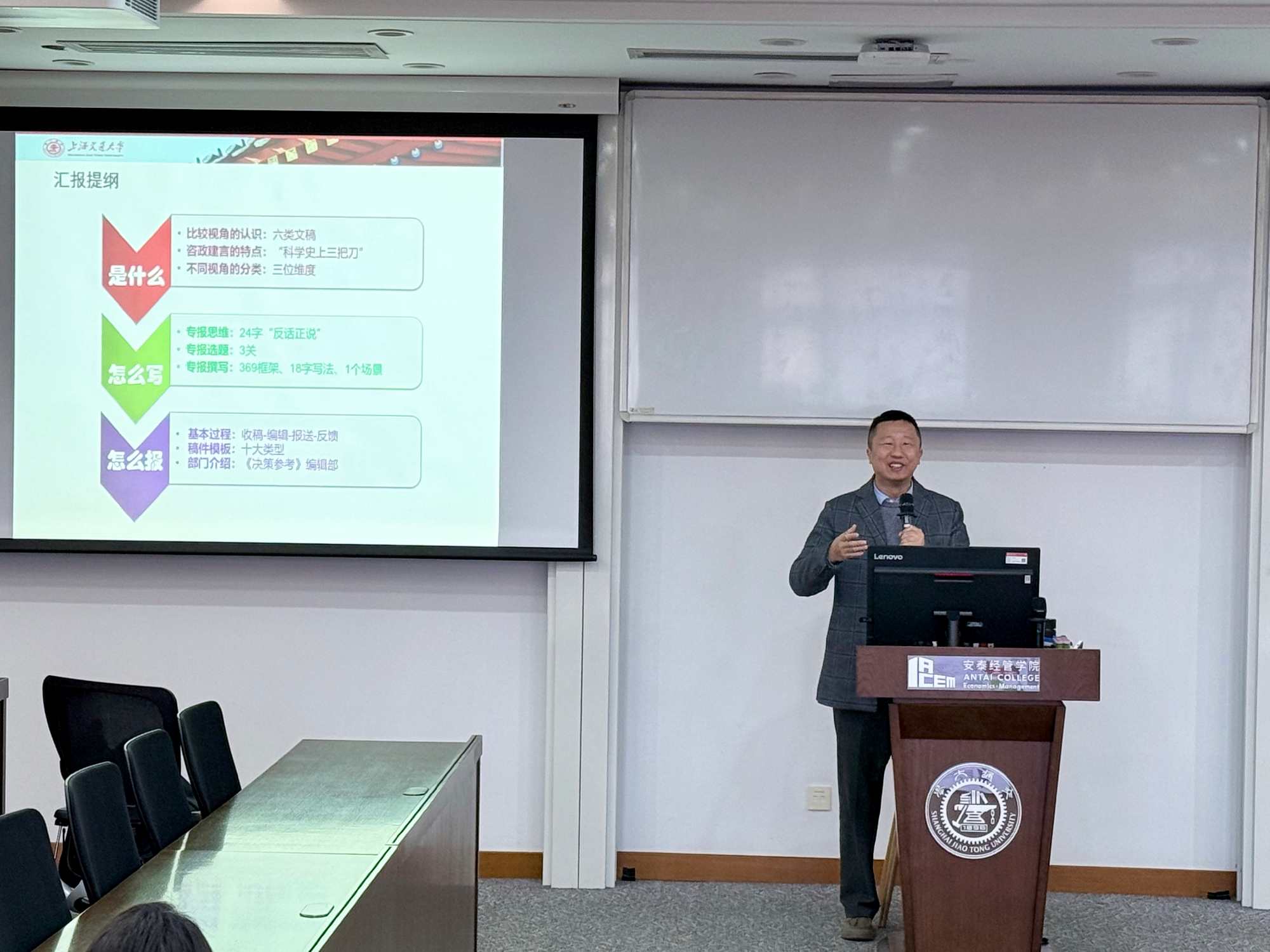 讲座伊始,熊竞围绕高校智库咨政建言核心议题展开分享。他剖析了高校策论研究的鲜明特质,指出专报作为决策咨询核心载体,需精准契合 “快阅读、浅阅读” 的需求特点,同时结合实践明确了专报建议易被采纳的典型场景,为在座的老师们把握咨政建言方向提供了关键指引。
