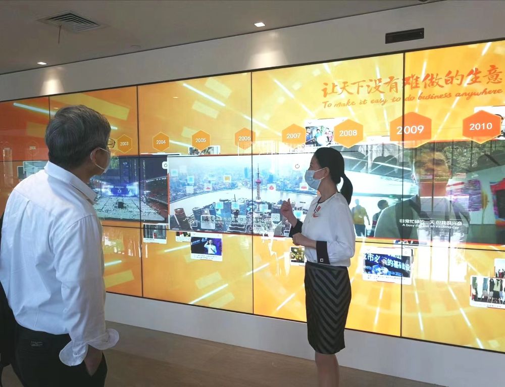 首先,陈院长一行听了阿里巴巴的企业文化介绍。其中,每年的5月10日被定为“阿里日”,这一天公司都会有庆祝活动。此外,阿里把每一次的重要事件视为一场“战役”,并设计一件战袍来调动员工们的积极性和参与感。一整面“战袍墙”让人印象深刻。