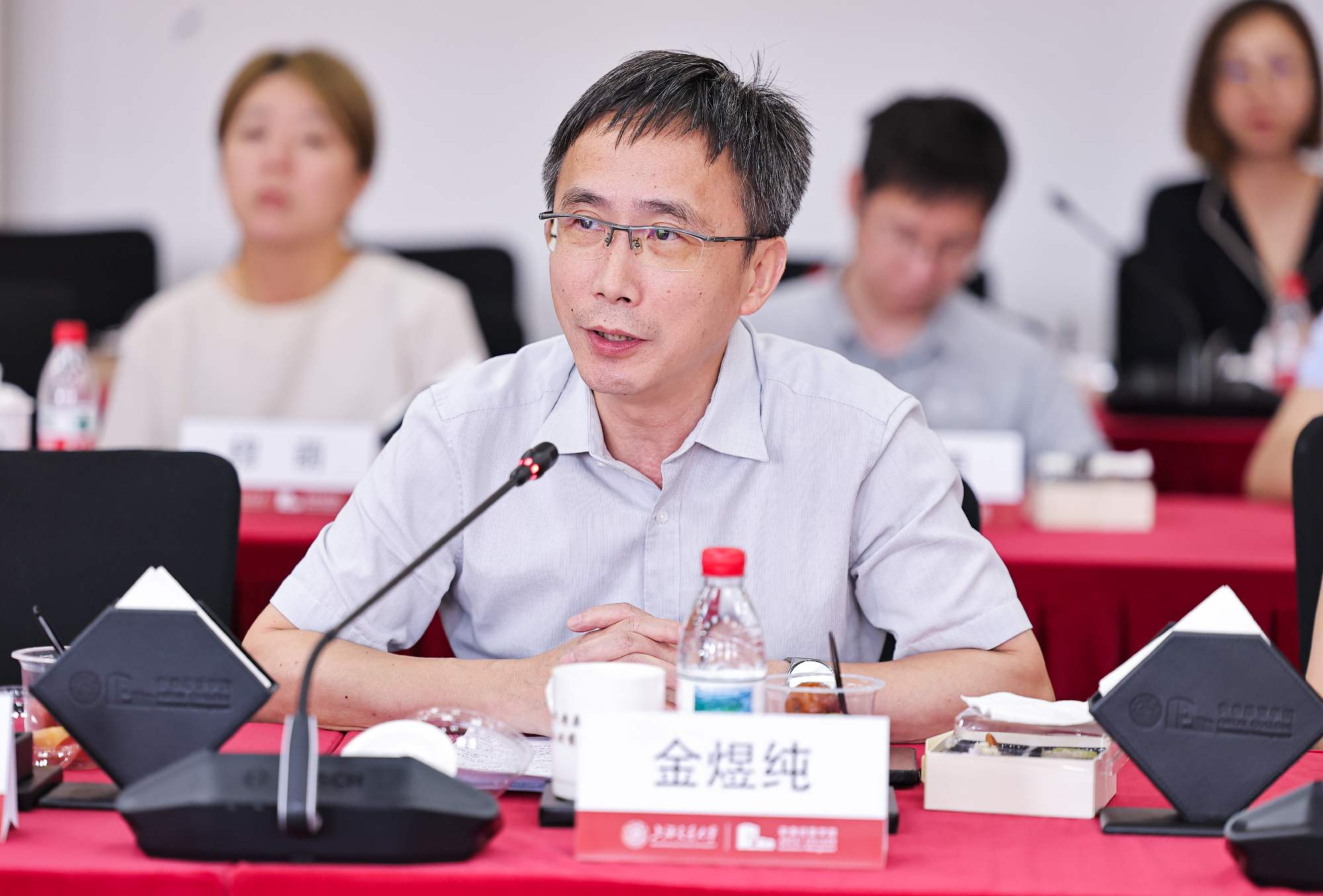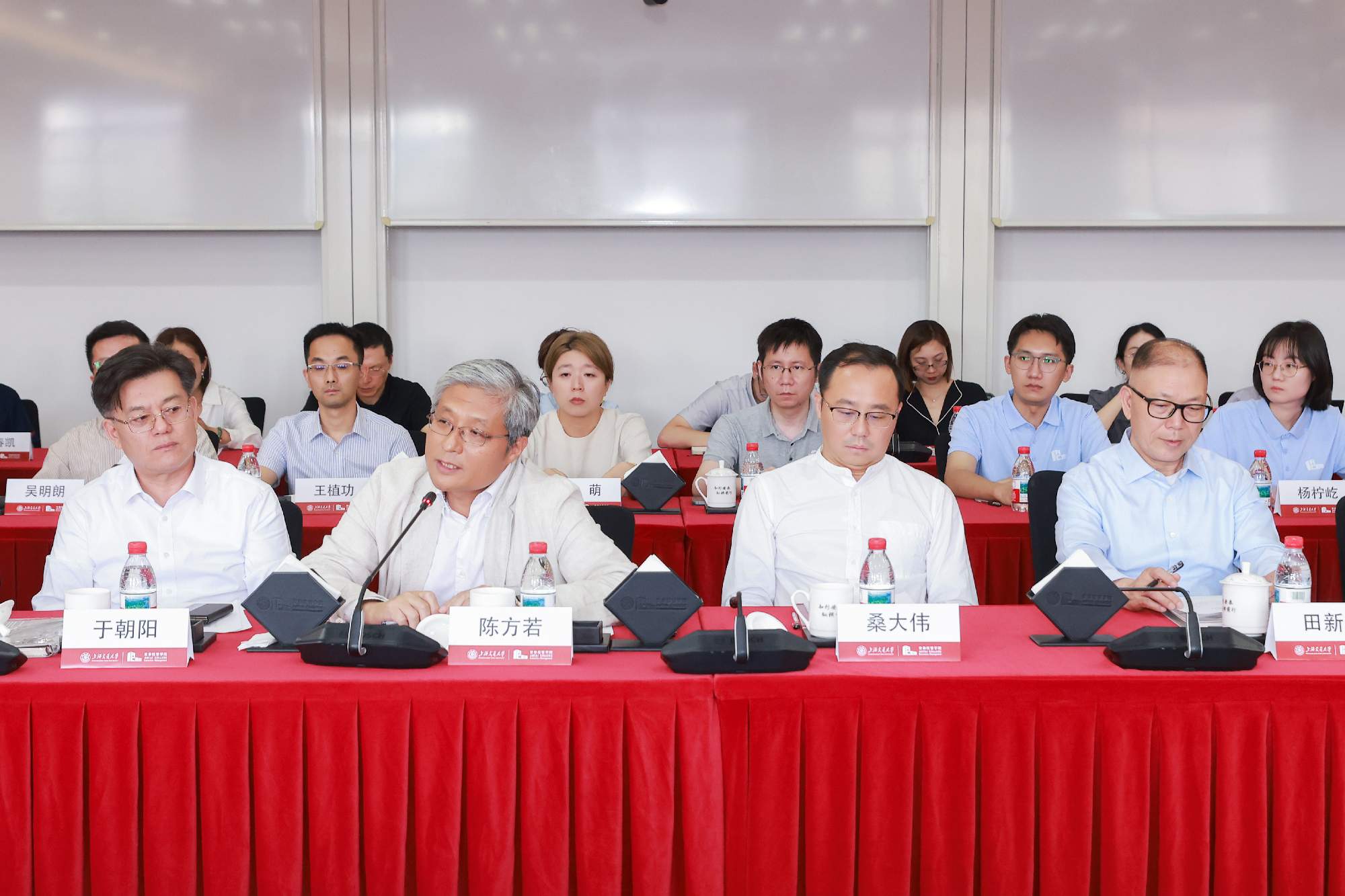 人民网上海分公司总经理、上海频道负责人金煜纯,人民网移动内容部副主任熊旭,上海交大党委常委、宣传部部长于朝阳,安泰经管学院院长陈方若,校党委宣传部副部长曹杰,安泰经管学院副院长桑大伟,党委副书记李厚锐,副院长朱喜,院长特别顾问田新民,人民网移动内容部思政组主编崔競文,华龙网教育科技公司总经理、总编辑王大伦,见知数据创始人、董事长、总经理、2012级MBA校友何川,壹沓科技副总裁、2013级EMBA校友陆玥,申浩律所主任、创始合伙人、2015级EMBA校友田庭峰,苏州氢澜科技有限公司董事长、创始人、2020级MBA校友庞深,安徽安龙基因科技有限公司董事长、科技金融MBA2023级在校生韦玉军,苏文电能上海分公司总经理、2023级EMBA在校生董立辰,上海飒智智能科技有限公司董事长、CEO、2024级交大安泰智能制造领航者首期班学员张建政,上海翌晶氢能科技有限公司董事长、总经理、技术转移硕士MTT2025级在校生刘青,上海宇昂水性新材料科技股份有限公司总经理杨钦,上海班德瑞工业用品有限公司副总裁王植功,上海盛剑科技股份有限公司证券事务代表吴明朗,视源股份上海分公司总经理刘畅出席活动。