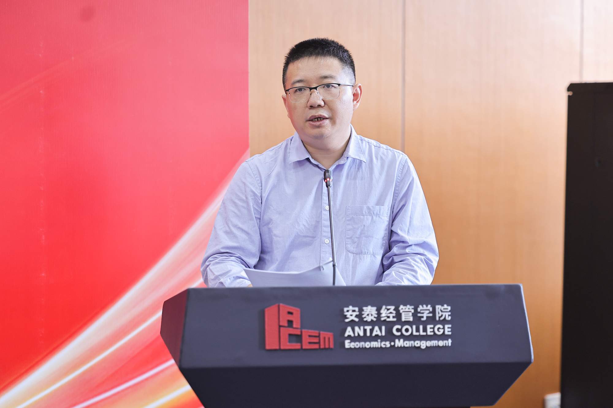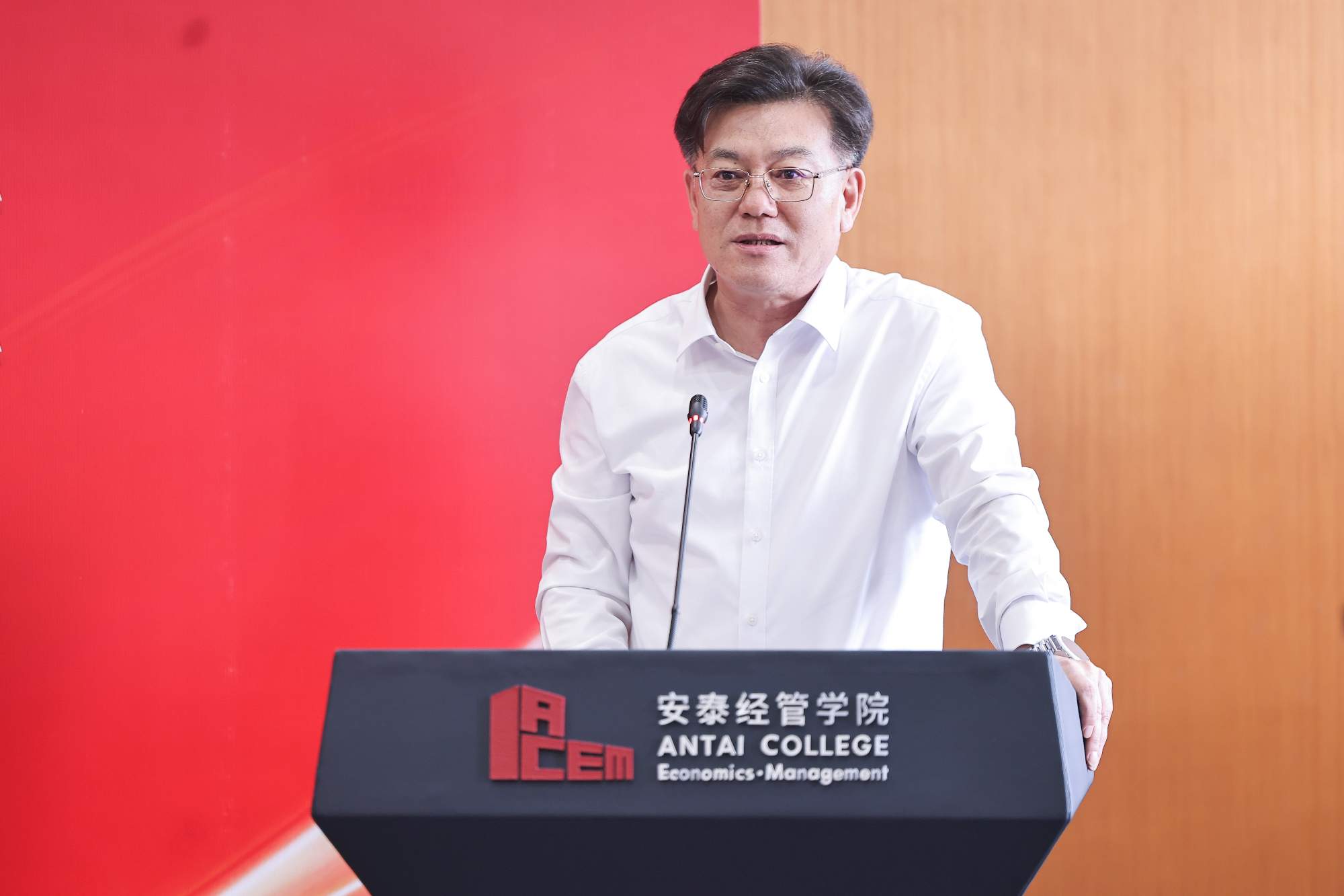 陈方若代表学院致辞,并指出了产教媒融合对于学院讲述“安泰故事”的重要性。他强调,管理本身就是一种生产力,与科技共同驱动创新发展。商科作为高度注重实践应用的学科,深化产教融合是必然选择,更需要媒体传播商学院故事。本次活动与人民网教育频道携手,系统性地展现安泰在管理教育领域的探索与成果:一是讲好校友的创新实践与产业贡献故事;二是讲述学院自身通过“纵横交错”战略推进改革的故事,尤其是以行业研究为抓手,紧密联结理论与实践、促进校友与在校生互动,所取得的前沿成效。