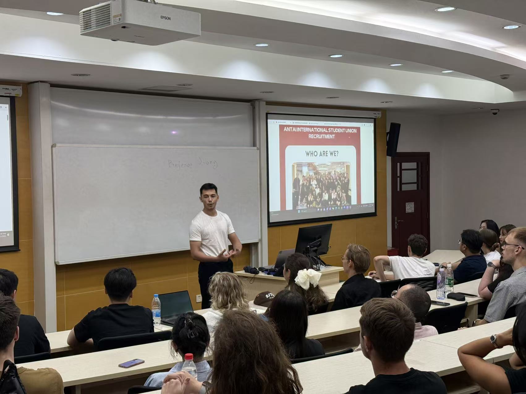 来自学生工作与职业发展办公室的陈静老师也出席了欢迎仪式,向新入学的MIB学生介绍了国际生事务管理、实习就业等情况。安泰留学生联谊会(AISU)主席Timur同学介绍了该留学生组织成立以来文化活动开展的情况。学院以文化育人和就业指导为抓手,以安泰留学生联谊会为依托,结合经管专业特色,对中外学生特别是留学生开展全方位育人活动。一方面增强留学生跨文化适应能力和文化认同,促进中外学生沟通互鉴,深入探寻中国文化;另一方面提升留学生生涯规划意识,拓展全球视野,提升学生全球胜任力。