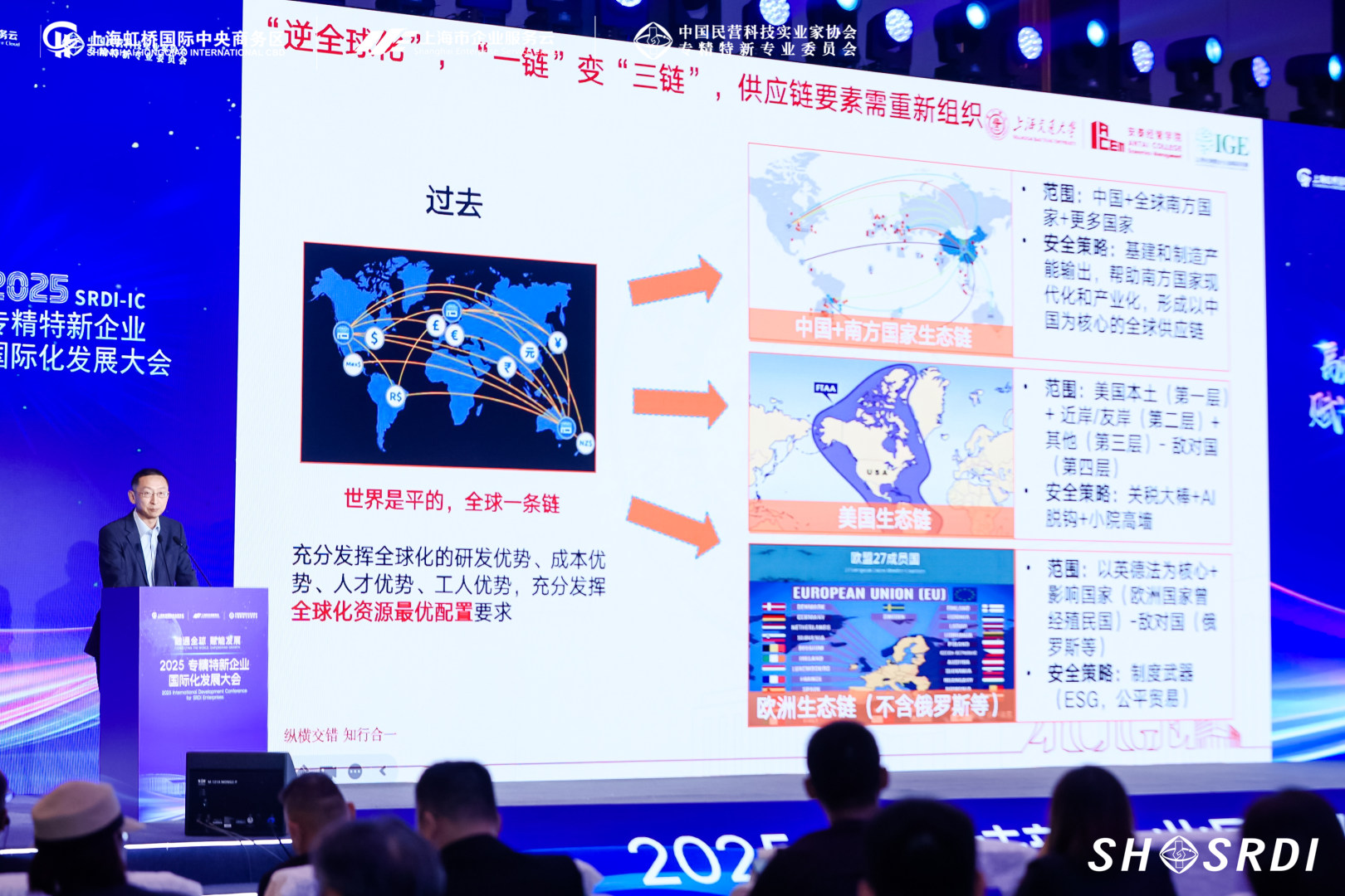 2025年11月8日,BB贝博艾弗森21世纪跨国企业战略研究院特聘研究员、深圳研究院首席科学家、院长助理蒋炜教授受邀率团队参加中国国际进口博览会“2025专精特新企业国际化发展论坛”,并做主题演讲。跨国供应链研究团队成员,交大安泰EMBA2015校友,上海连为科技有限公司总经理陈红军参加圆桌环节讨论,分享跨国大模型平台建设情况。