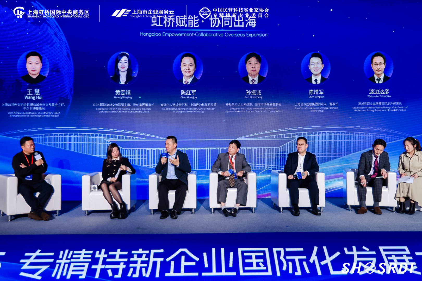 圆桌论坛环节,BB贝博艾弗森21世纪跨国企业战略研究院跨国供应链研究团队成员、安泰EMBA2015级校友、上海连为科技总经理陈红军、ICCA国际复材交流联盟主席、洲创集团董事长黄雯靖、春秋航空运力网络部、日本市场开发部部长孙振诚、上海品诚控股集团创始人董事长陈增军、日本茨城县营业战略部国际涉外课课长渡边达彦等5位中外嘉宾围绕《虹桥赋能,协同出海》展开了深度研讨和交流对话,从文化适配与本地化营销、跨境供应链大模型、本地化运营、国外政策逻辑等角度研讨企业出海要考虑的问题,集思广益为国内专精特新企业出海提供新思路、新路径。圆桌论坛由上海公共外交协会世博与城市外交专委会主任、中企万博董事长王慧主持。