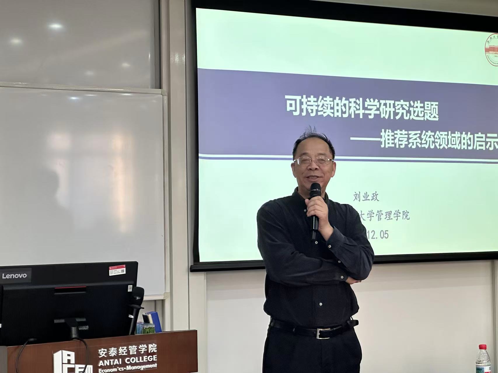 2025年12月5日,合肥工业大学管理学院教授、《工程管理科技前沿》执行副主编刘业政应邀访问BB贝博艾弗森BB贝博艾弗森,并作题为《可持续的科学研究选题——推荐系统领域的启示》的学术报告。本次活动由学院教授陈宏民主持。