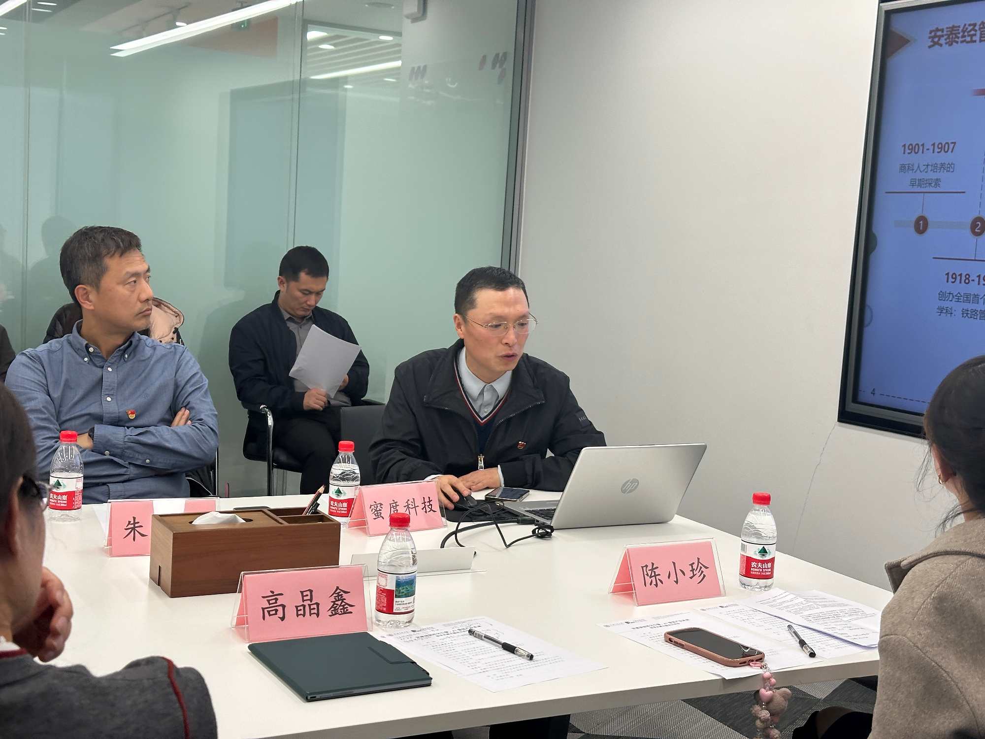 联合办学党支部书记、中银科技金融学院产教融合发展中心主任陈建科介绍了学院党委情况、支部情况,并重点介绍了在党建引领下学院在全国首个技术转移专业硕士(MTT)项目建设和人才培养方面的创新探索及取得的成果。