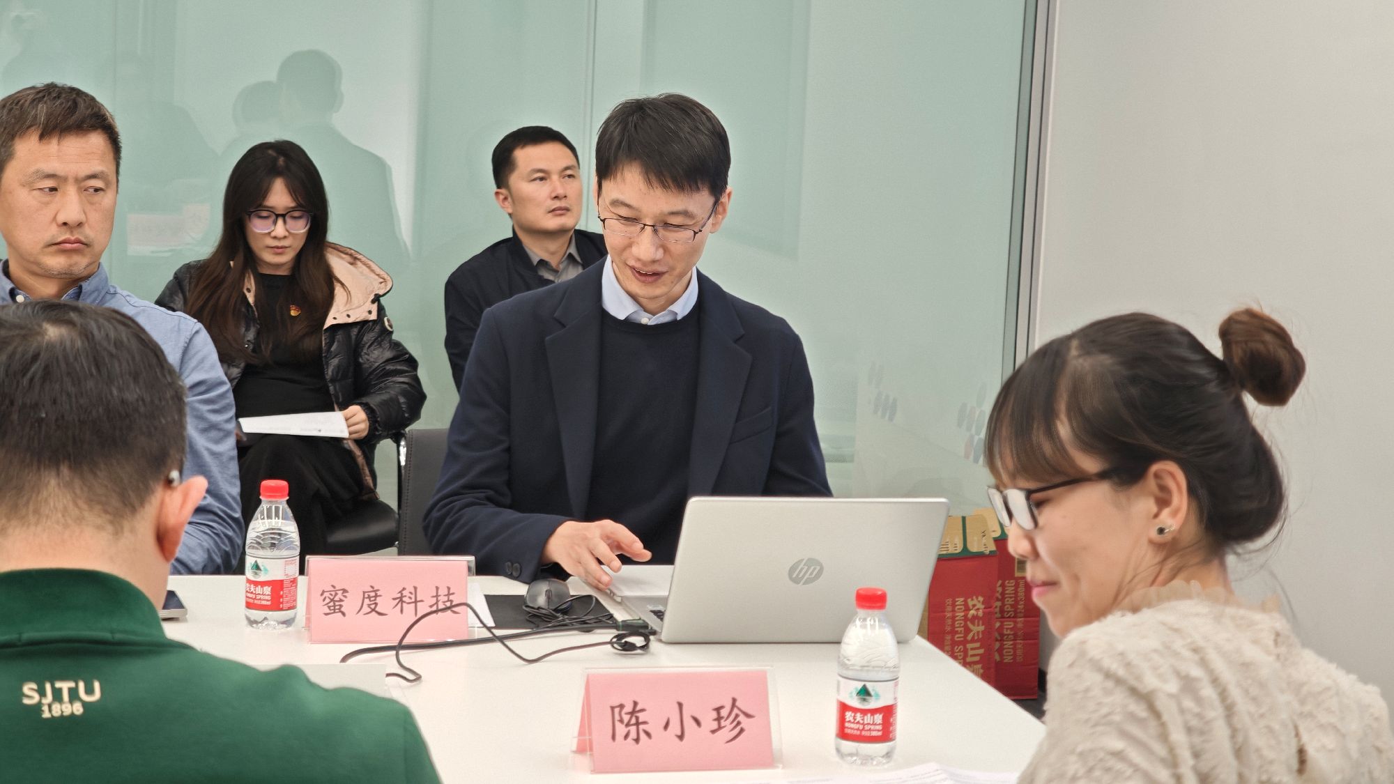 交大校友企业、蜜度科技首席技术官刘益东分享了企业从大数据到AI大模型的创业发展历程,并特别回忆了陪同习近平总书记视察模速空间的经历,传达了“人工智能是年轻的事业,也是年轻人的事业”这一重要精神,令在场党员倍感振奋。