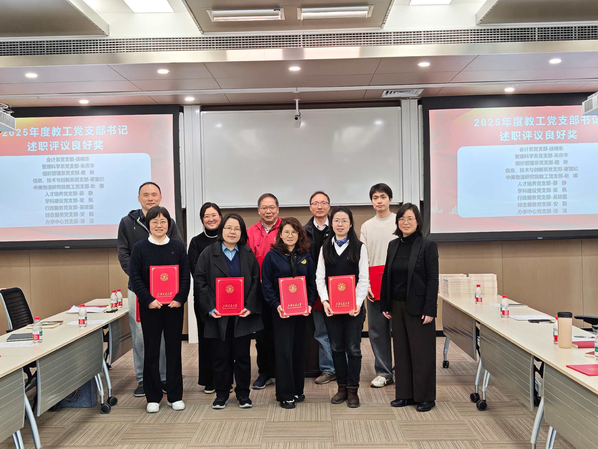 会议对2025年度教工党支部书记述职评议结果进行了通报与表彰,充分肯定了各支部过去一年的工作成效,激励全体党支部书记在新的一年以更高标准履职尽责、担当作为。